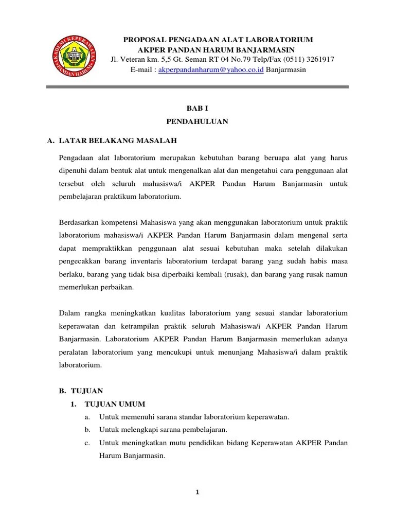 Text of proposal pengajuan bantuan peralatan laboratorium ipa smp. Pendahuluan pranata laboratorium merupakan jabatan . Laboratorium klinik merupakan sarana kesehatan yang melaksanakan . Tahap 6 akreditasi tahap akhir dari proses penerapan dan perolehan status akreditasi bagi laboratorium adalah mengajukan surat permohonan akreditasi ke kan dan . Proposal permohonan bantuan sarana prasarana laboratorium bahasa universitas iqra buru.